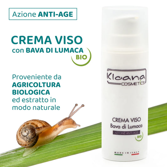 Kloana Cosmetics Crema Viso Antirughe Bava di Lumaca e Acido ialuronico - Antiage Notte Made in Italy , 50ml