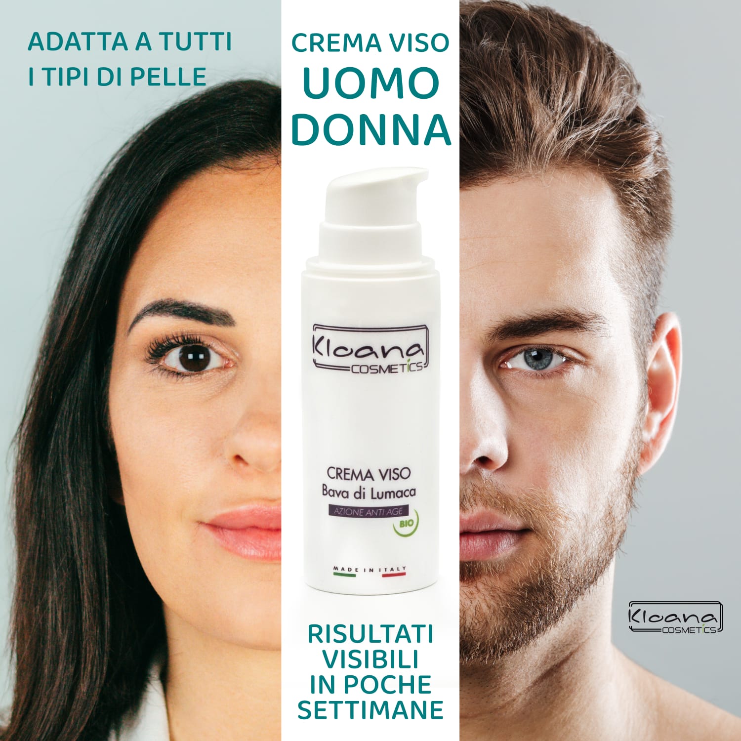 Kloana Cosmetics Crema Viso Antirughe Bava di Lumaca e Acido ialuronico - Antiage Notte Made in Italy , 50ml